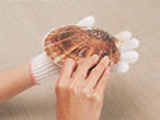 (1)殻をよく水洗いしたホタテを殻ごと金網にのせ、中火で焼く。