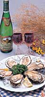 (1)カキは殻から出し2皿に盛り、レモンを添える。